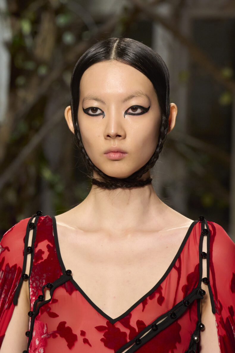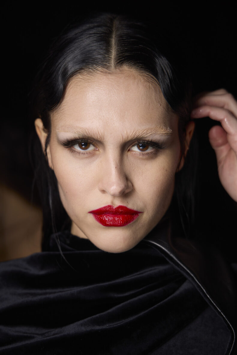 Accanto a McGrath, altri talentuosi artisti del make-up hanno lasciato il segno sulle passerelle più recenti. La Maison Rowen Rose ha introdotto un effetto glowy così etereo, illuminando i volti delle modelle con un bagliore senza precedenti che ha catturato l’essenza della bellezza eterea. Antonio Marras ha giocato con linee grafiche audaci sugli occhi, creando un contrasto sorprendente.
