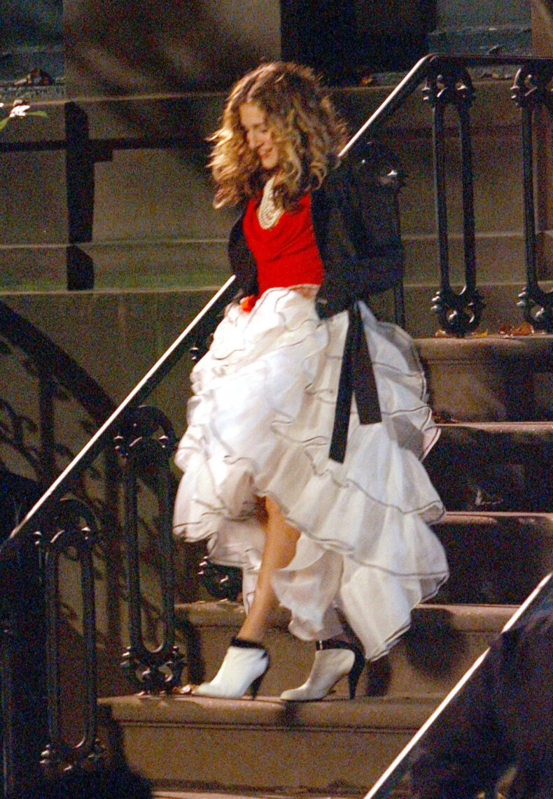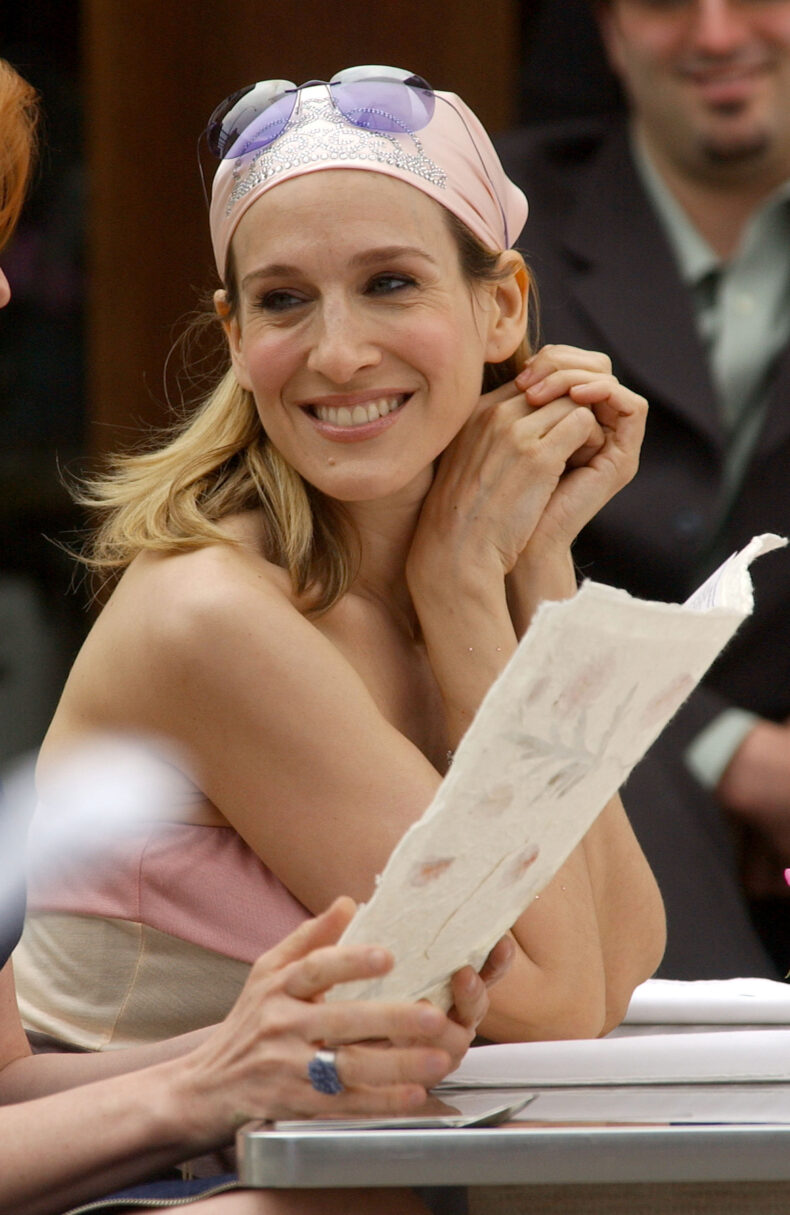 - NEW YORK – NOVEMBER 7: (ITALY OUT) Actress Sarah Jessica Parker is seen on the set of “Sex and the City” in the West Village November 7, 2003 in New York City. (Photo by Arnaldo Magnani/Getty Images)