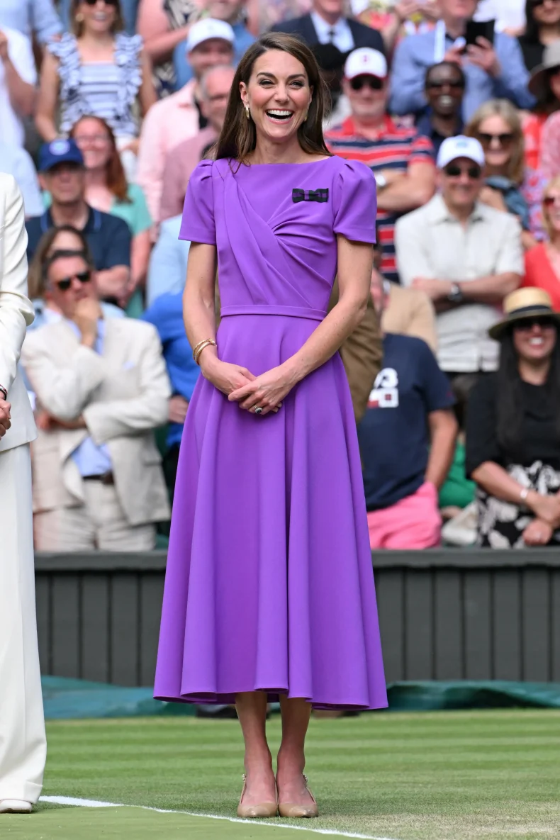 Apparsa per la prima volta nel Royal Box poco dopo il matrimonio con il Principe William, Kate Middleton ha costruito nel tempo un vero e proprio stile da Wimbledon: sobrio ma mai noioso, british ma internazionale, royal ma perfettamente contemporaneo. Tra i brand più ricorrenti ci sono Alexander McQueen, Jenny Packham, Emilia Wickstead, Dolce & Gabbana, Self-Portrait, Ralph Lauren e, più recentemente, Safiyaa. I suoi outfit hanno spesso incluso dettagli simbolici, come il pin viola-verde del club, la borsa My Sicily firmata D&G o l’orologio Cartier Ballon Bleu donatole da William, portato con regolarità negli anni.