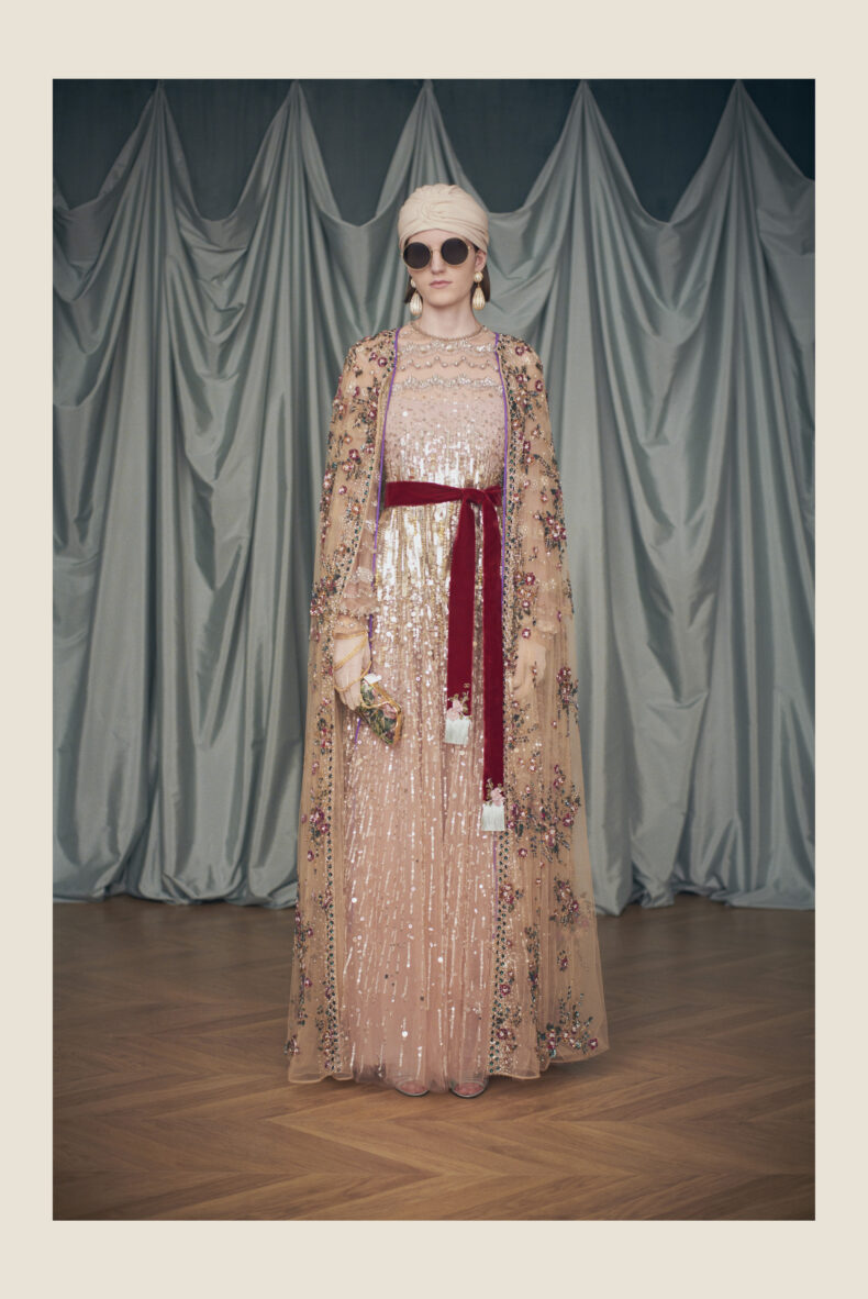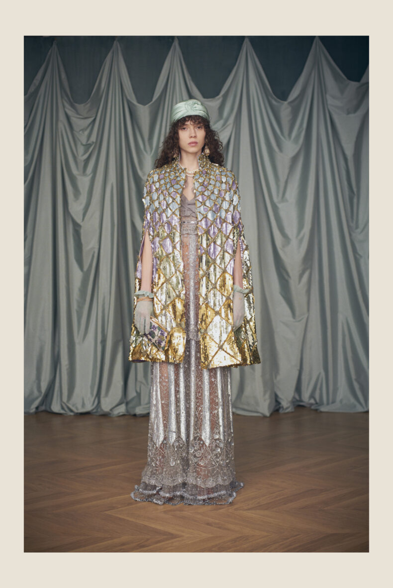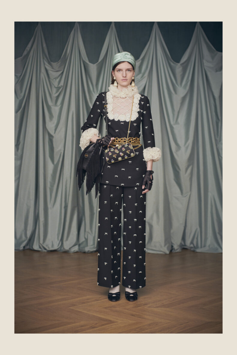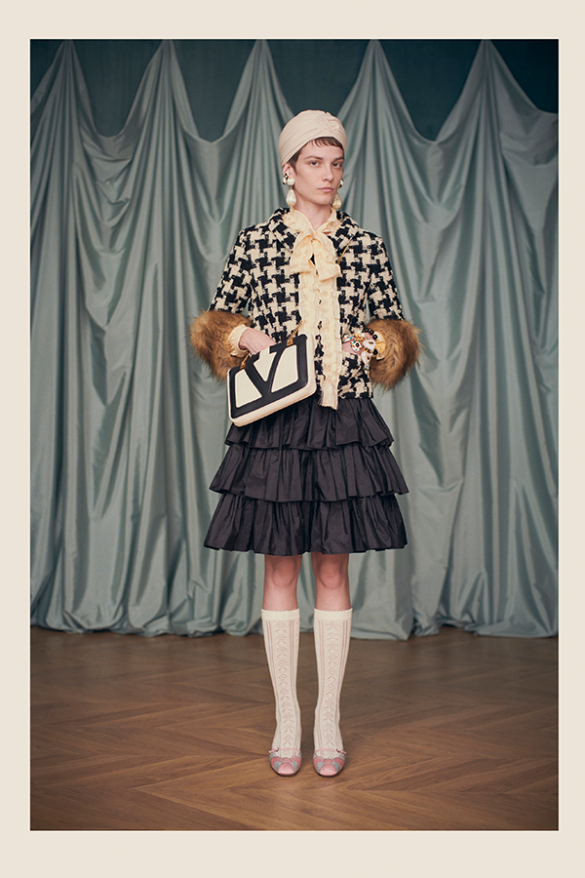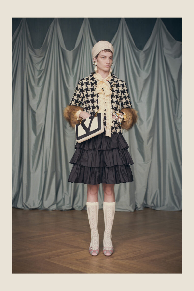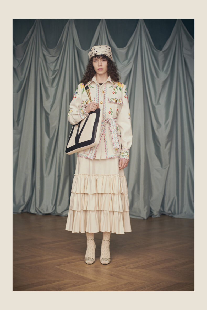 L’estetica del nuovo direttore creativo, conosciuto per il suo stile eclettico e eccentrico, si fonde perfettamente con l’eredità di Valentino. La collezione racconta un vero e proprio viaggio nel tempo, ripercorrendo la storia e gli archivi del patrimonio di Garavani, con una particolare attenzione agli Anni ’60 e ’70.
