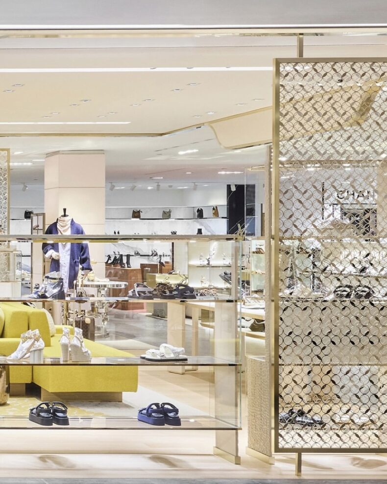 Al terzo piano, invece, lo spazio dedicato alla donna, tra fantasia geometriche e luccichio. La palette di colori luminosi e il mix di materiali dalle diverse finiture riflettono la creatività senza confini della Maison. Inoltre, opere d’arte contemporanee – tra cui i poster di Rune Elmegaardn e le stampe di Steve McCurry – impreziosiscono le pareti, creando un ambiente fatto di bellezza autentica.