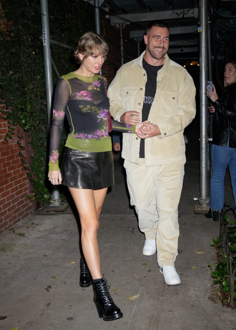 - NEW YORK, NEW YORK – OCTOBER 15: Taylor Swift and Travis Kelce have dinner at Waverly Inn on October 15, 2023 in New York City. (Photo by Gotham/GC Images)
