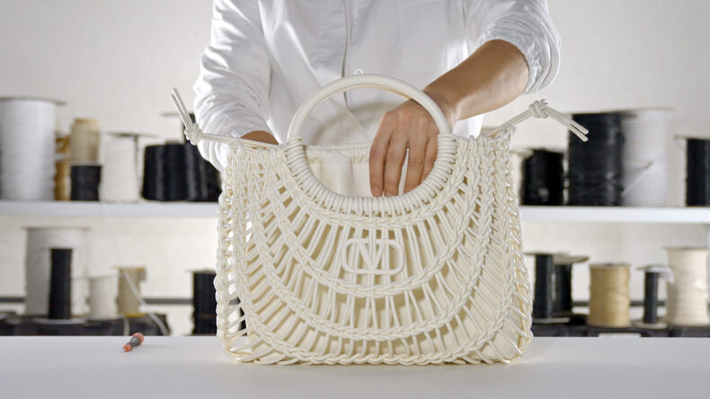 Alcune immagini del making of della nuova borsa Allknots di Valentino Garavani